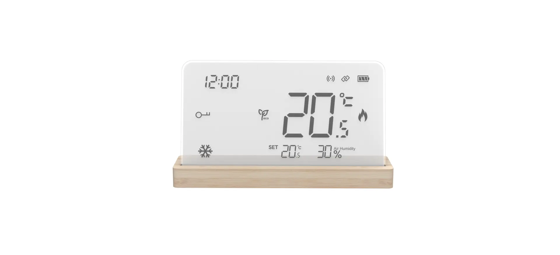 融合自然之美与科技之光,我们的全新智能温湿度控制器,以竹子底座和玻璃显示屏,为您的家带来清新与现代的完美融合。
